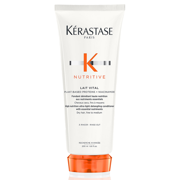 Lait Vital de Kérastase es un acondicionador desenredante ultraligero altamente nutritivo para cabello fino a medio seco. Contiene lípidos nutritivos y vitaminas que proporcionan una nutrición intensa, desenredando y suavizando el cabello seco. Lait Vital está repleto de nutrientes esenciales que aumentan la capacidad de la fórmula para nutrir y fortalecer el cabello. La poderosa fórmula liviana penetra la fibra capilar para hidratar profundamente y sella las cutículas para retener la humedad por más tiempo. Lait Vital tiene una textura de gel cremoso blanco, lo que lo convierte en uno de los mejores acondicionadores sin enjuague para cabello seco. Hasta +85%* de hidratación inmediata y nutrición 72H.* Tubo fabricado con un 45% de plástico reciclado.
